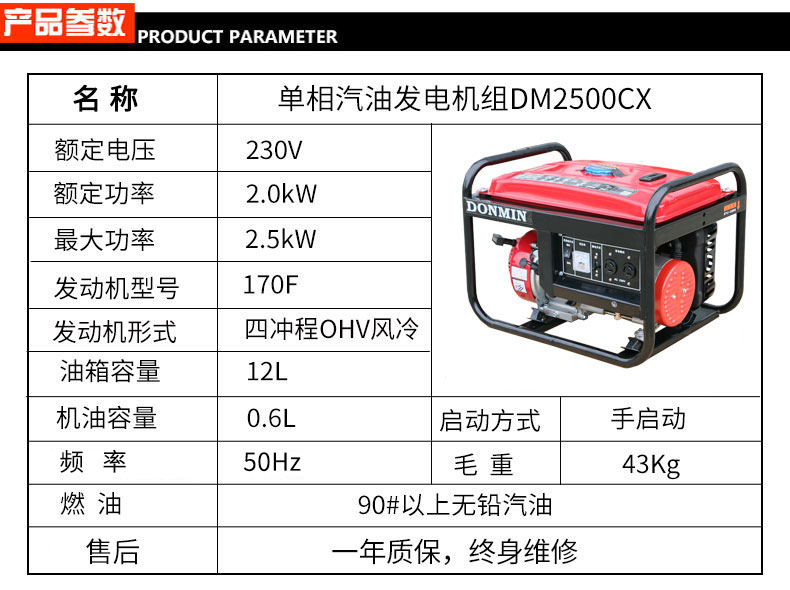 * 表示必填采購(gòu):?jiǎn)蜗?kW小型汽油發(fā)電機(jī)組DM2500CX